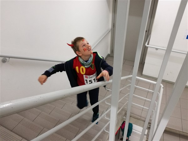 Ten voordele van RodeNeuzenDag deden we met het zesde leerjaar mee aan de Belfius Tower Run.