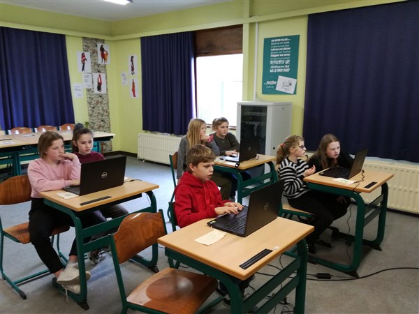 We gingen op verkenning bij onze grote buren, de middenschool van de SJIB. Na een welkomstwoordje van de directeur mochten we gaan proeven van enkele talentgerichte projecten die de school aanbiedt, tof zeg! We kregen ook al wat informatie over hoe het er in het middelbaar aan toe gaat, welke lessen er zijn, of er leuke activiteiten georganiseerd worden (we verklappen het al: ja, een heleboel!).