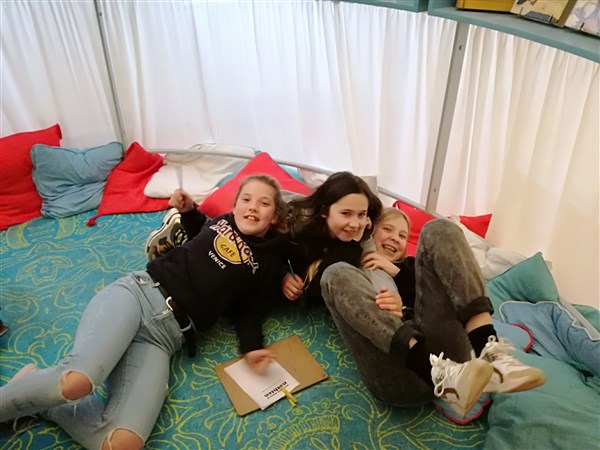 Tijdens de voorleesweek trokken we er weer op uit om in de andere klassen ons beste voorleesbeentje voor te zetten. En dat is best goed gelukt! De leerlingen hebben er van genoten, wij trouwens ook.